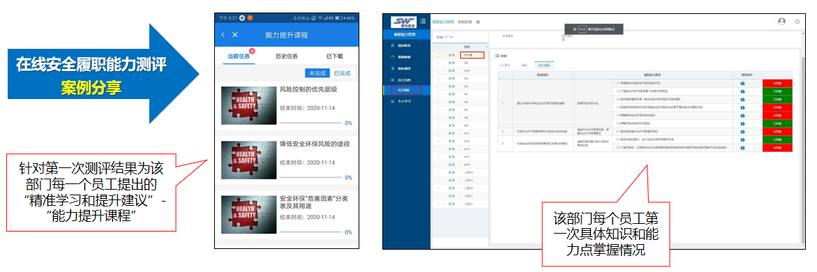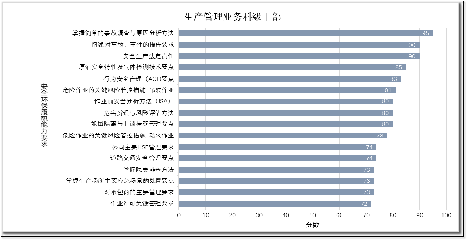 | 以“生產(chǎn)管理業(yè)務科技干部”為例,精準掌握每類人員“安全履職能力”的強弱項(見下圖) | |||||||